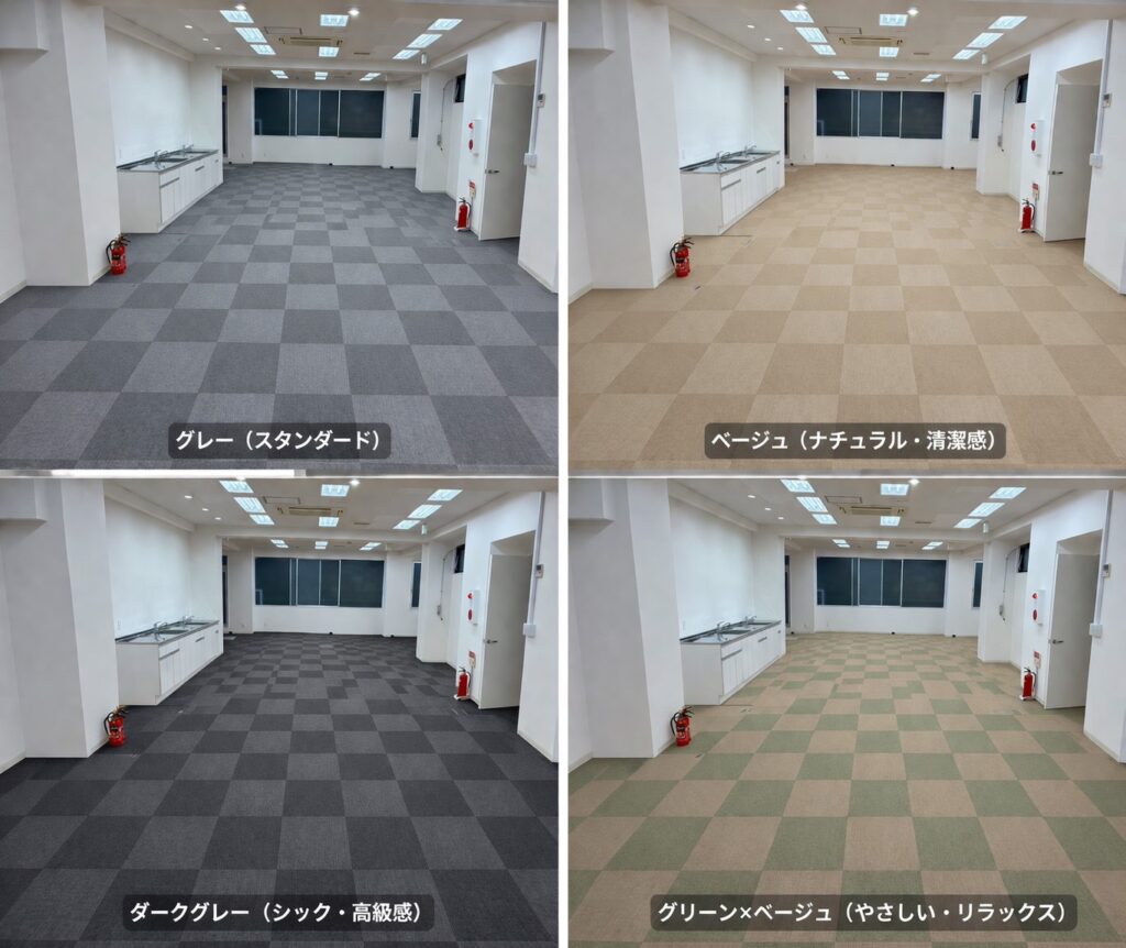① 居抜き物件ですが、契約後に床をタイルカーペットへ張り替えいたします。